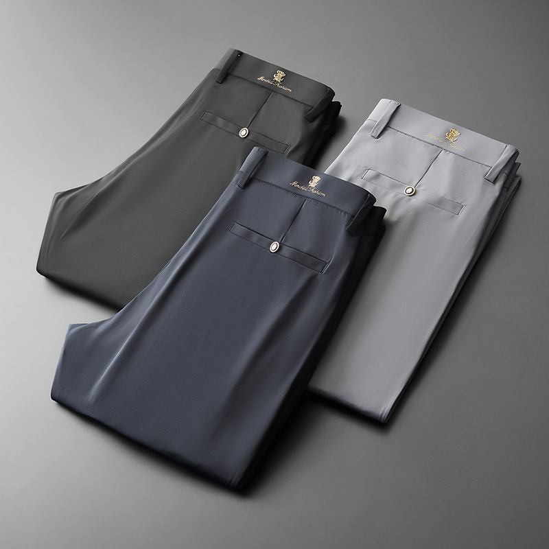 Sommer Tynn Is Silkebukser Herre Strykefri Straight Casual Bukser Elastiske Lange Lette Business Dressbukser